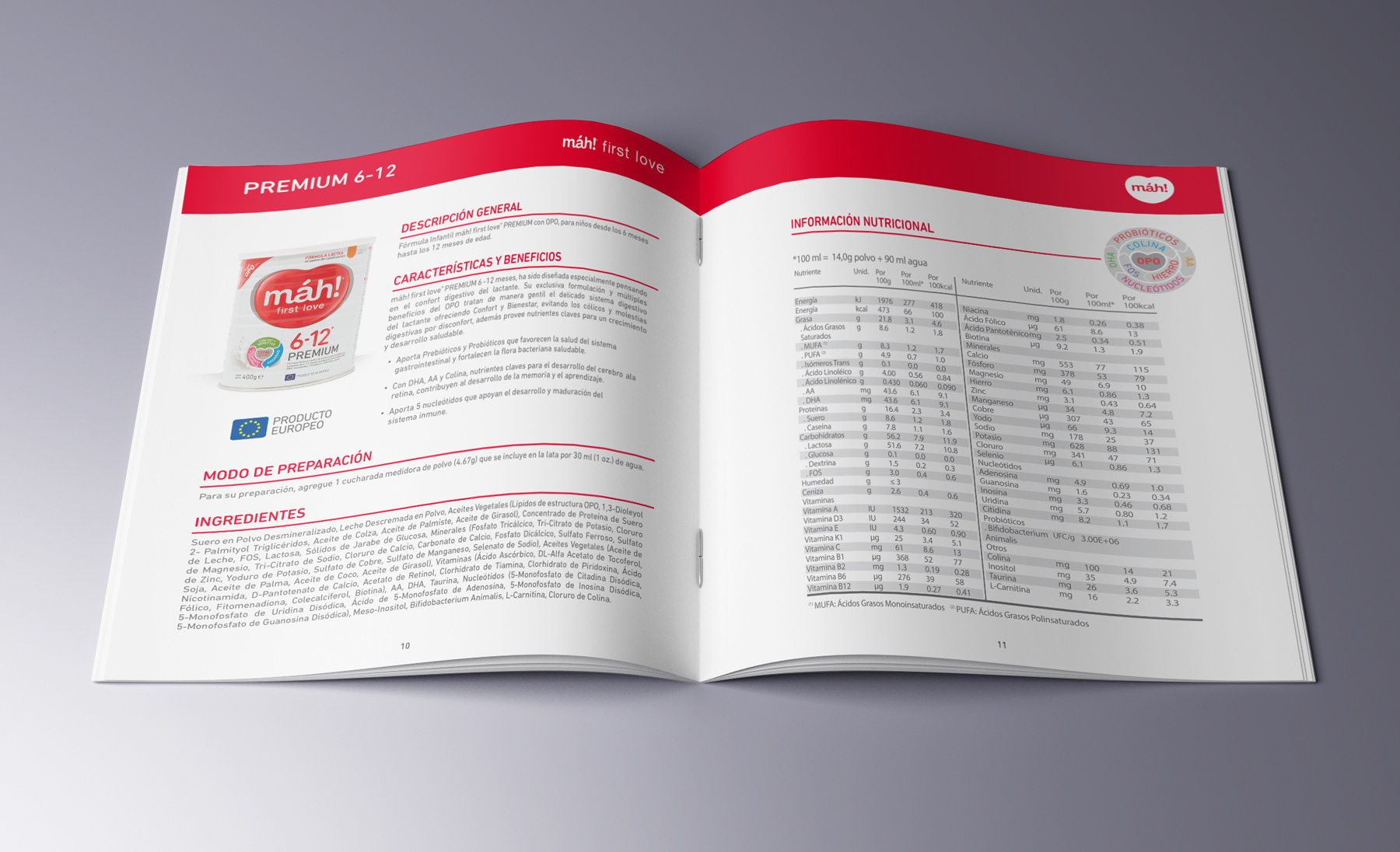 48 page instructional booklet containing nutritional information and benefits of the products that máh!® offers.